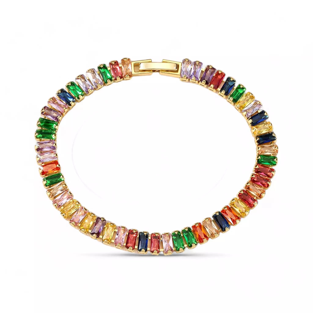 - Design Exclusivo: Cada zircônia colorida foi cuidadosamente selecionada para criar um efeito deslumbrante e harmônico, tornando este bracelete uma peça única.